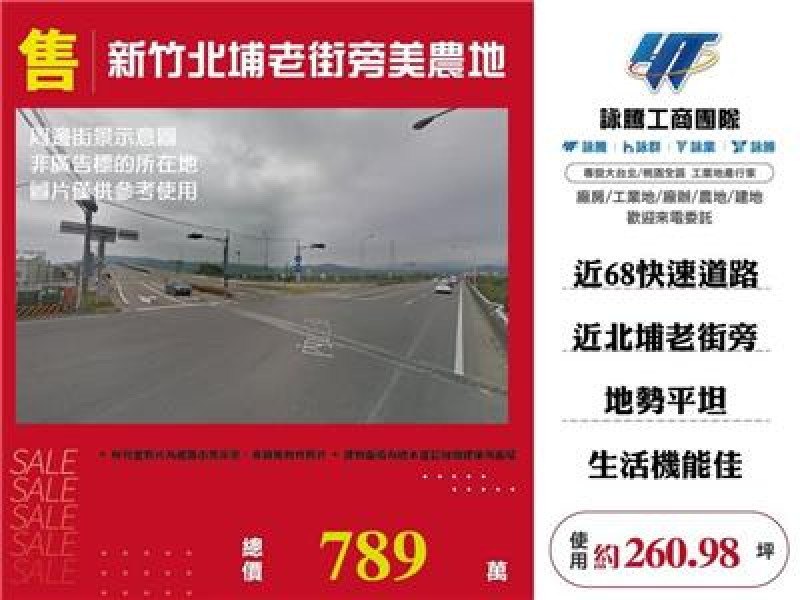 商品介紹:1.臨路20米 2.近68快速道路、台三線,近北埔老街 3.地形方正漂亮平坦 4.鄰近行政區域生活機能佳